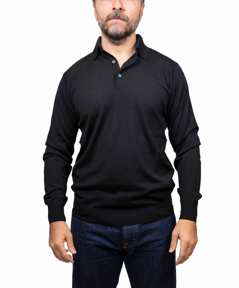 Polo merino, tinta unita nero