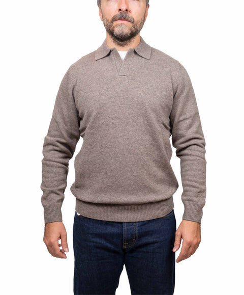 Maglione polo in lana tinta unita marrone chiaro