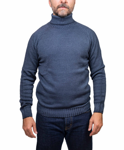 Maglione dolcevita tinta unita blu avio